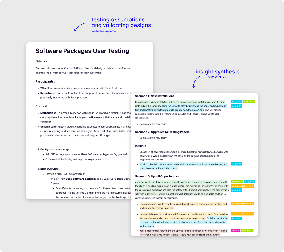 The MVP launch version formed a critical part of our product’s go-to-market launch. The experience integrates in-app and webapp flows for electricians to confidently provision the right feature packages to the Basis Smart Panel on-site.
